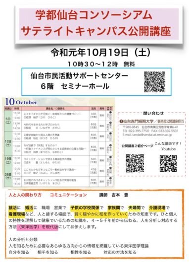 2019年10月12日(土)、13日(日)に赤門青葉山校舎、国分町校舎で開催予定の